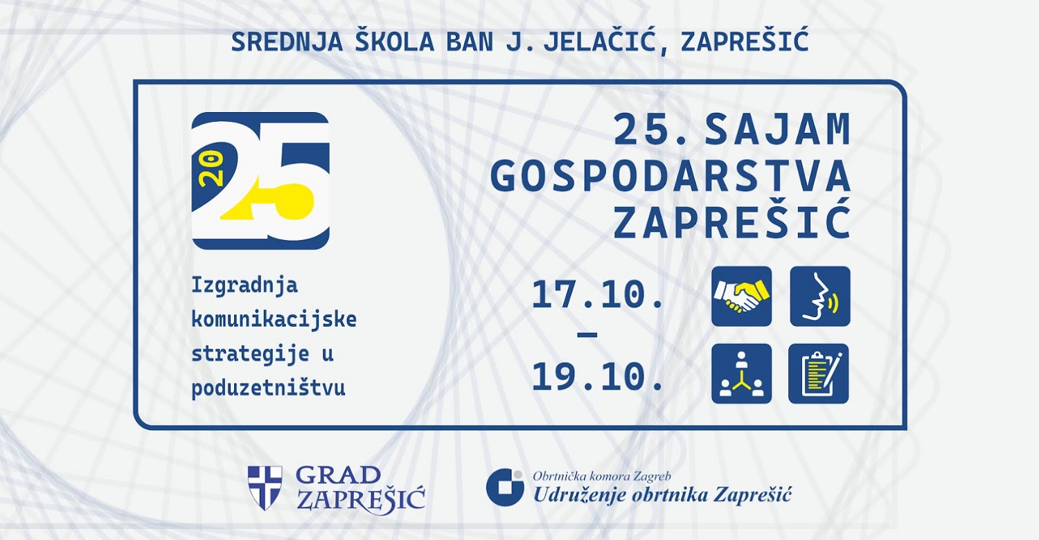 I ove godine, uz podršku Grada Zaprešića i susjednih općina, organiziramo, jubilarno 25. izdanje našeg tradicionalnog prodajnog Sajma gospodarstva, ovoga puta u novom osvježenom formatu pod radnim nazivom „Izgradnja komunikacijske strategije u poduzetništvu“. Sajam je prilika da predstavite i ponudite javnosti svoje proizvode i usluge, a tome ćemo zajednički pridodati i niz drugih sadržaja koji se tiču poboljšanja položaja vas kao obrtnika i poduzetnika.